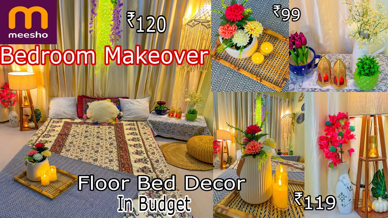 Meesho Bedroom Makeover / Floor Bed decor / Rental Friendly #bedroomdecor #meeshodecor